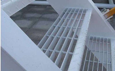 樓梯踏步板是由鋼格板加工而成的(鋼格板是用扁鋼按照一定的間距和橫桿進行交叉排列,并且焊接成中間帶有方形格子的一種鋼鐵制品)。該產品表面一般用熱鍍鋅、電鍍鋅處理。